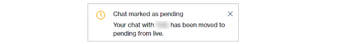 When a chat is successfully marked as pending, you will see a confirmation message in the bottom right of your screen: