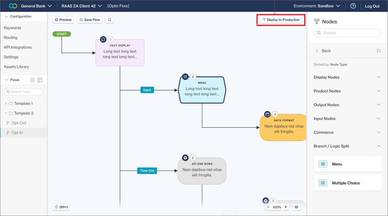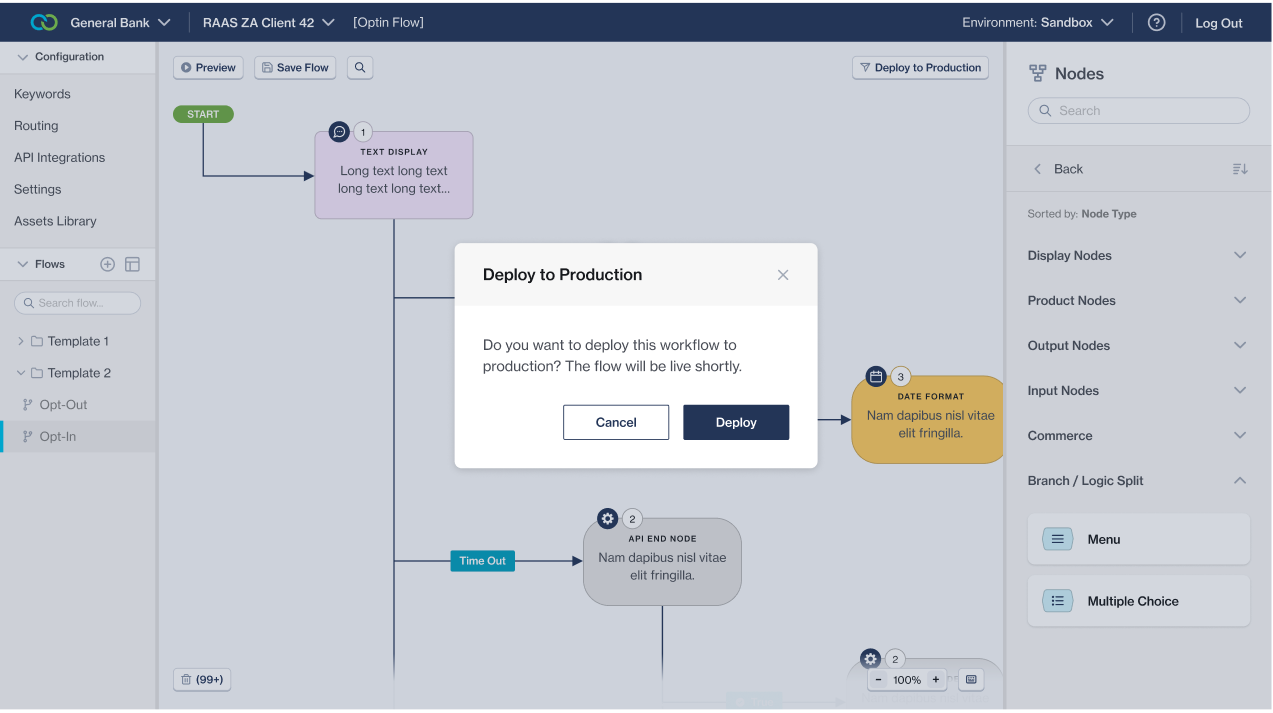 With this release, we've added another way for one person to approve and deploy flows without requiring a second 'user'. Once the simplified "1-Click Deploy Process" is enabled on a client's account, the flow-builder is allowed to deploy their own flows straight from the Chat Flow canvas, saving them a lot of time and frustration.