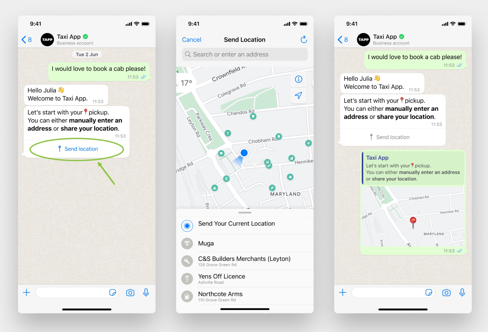 Sending and requesting locations on WhatsApp