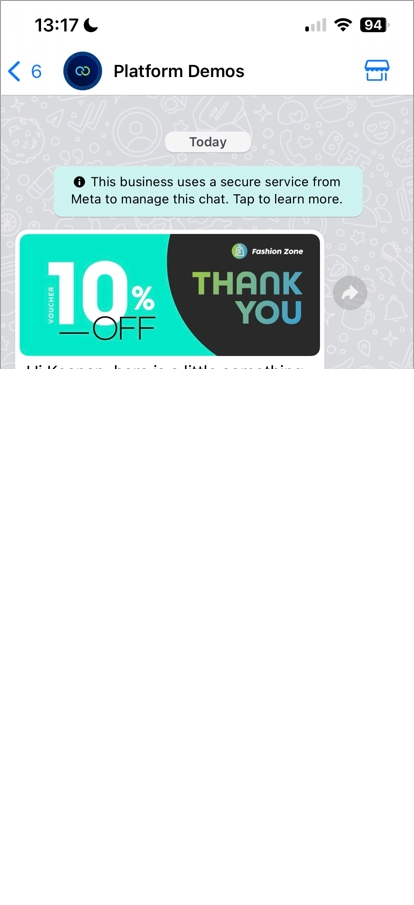 You can now add a Copy offer code button to any of your message templates. When tapping this button, the code is copied to your customer's clipboard and they can paste it wherever they want.
