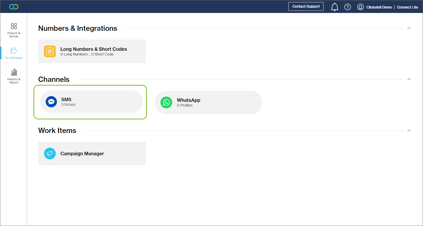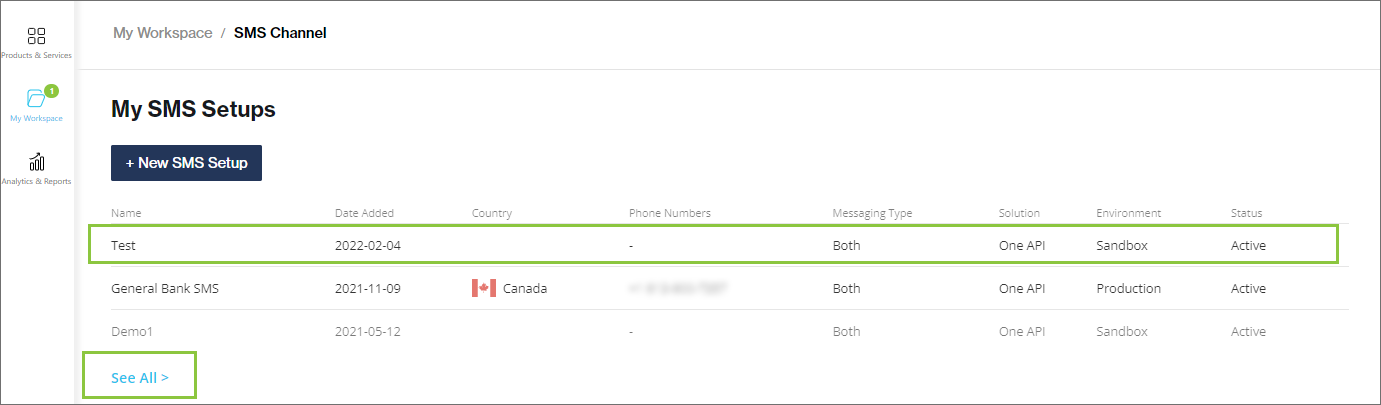 * Details about all your current SMS setups are listed in the *My SMS Setups* table.&#x20;