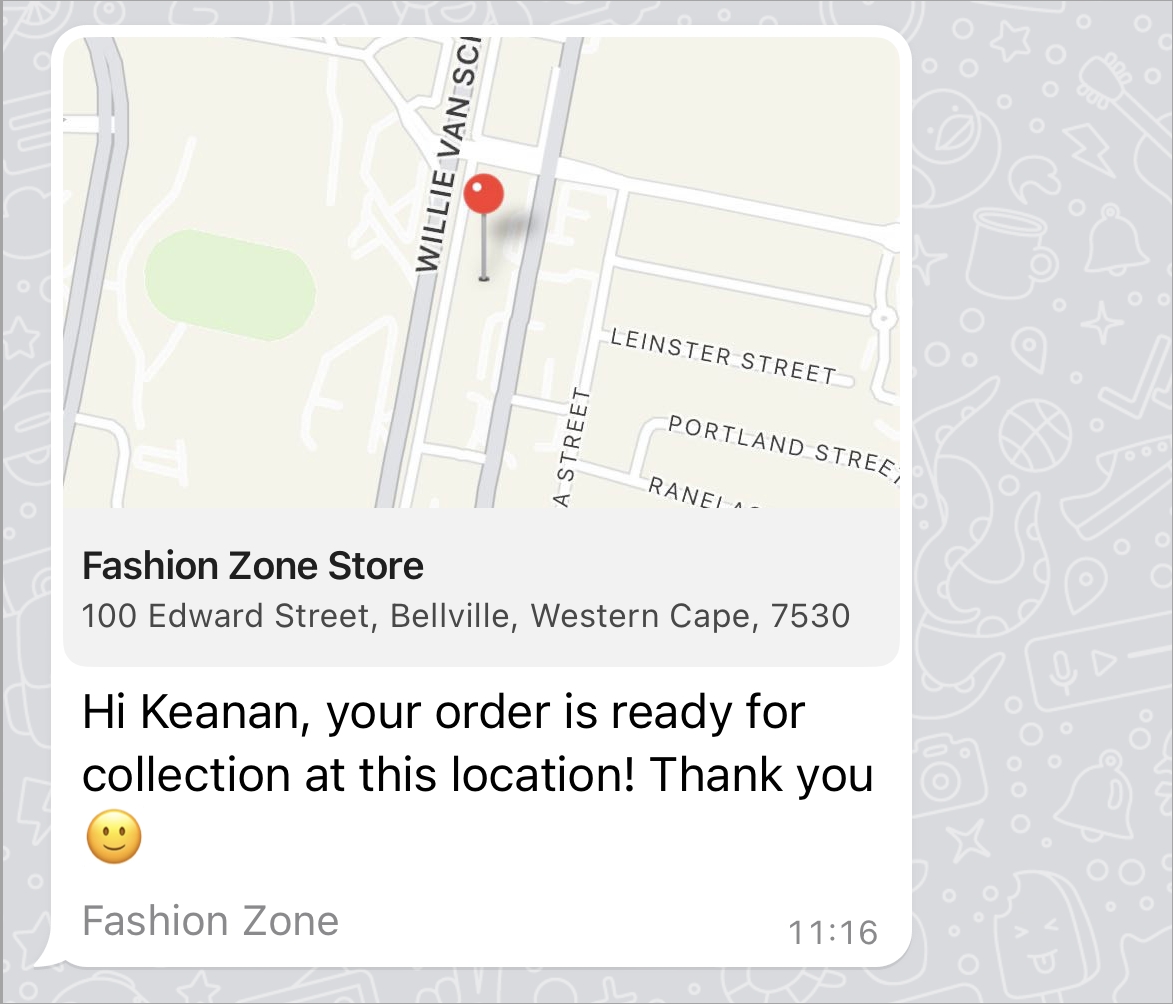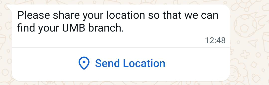 Send a location's latitude and longitude coordinates to a customer. Tapping the map opens the location in the mobile phone's map app.