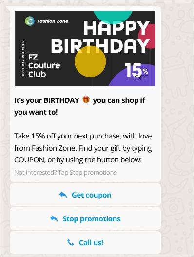 Send marketing and utility templates to customers. Unlike all other message types, template messages do not require a 24-hour customer service window to be open between you and the customer before the message can be sent.