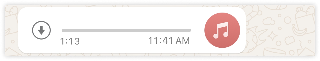 Display an audio icon and a link to an audio file. The audio file is downloaded and played when a customer taps the icon.