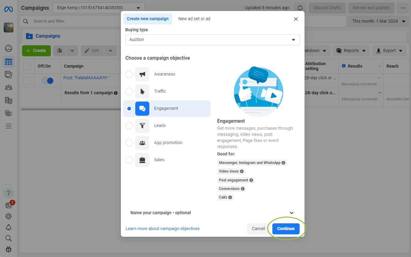 Choose your campaign objective and click Continue.