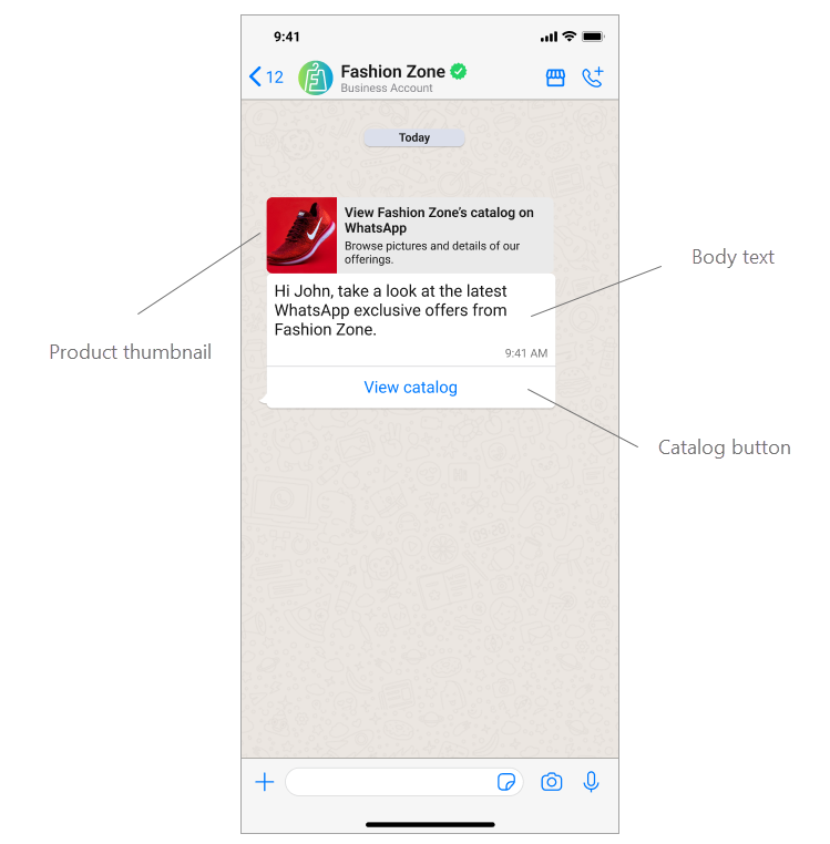 When a customer taps the View catalog button in a catalog template message, your product catalog appears within WhatsApp.
