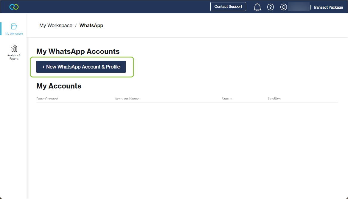 Click + New WhatsApp Account & Profile.